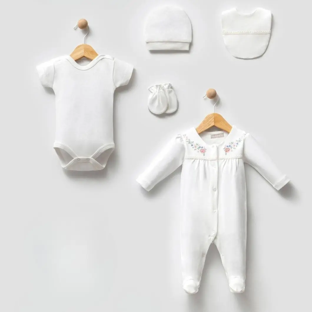 Set 5Piese Nou Născuți White Daisy - 100% Bumbac