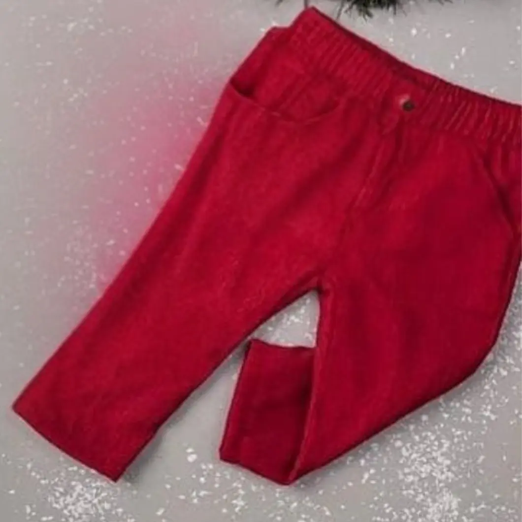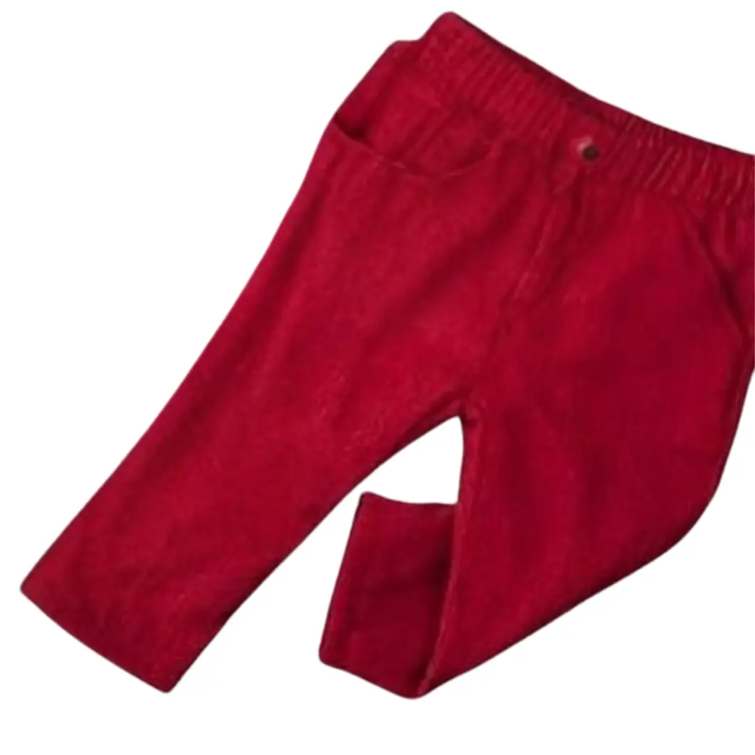 • Pantaloni lungi din material reiat, roșii, cu dublură interioară