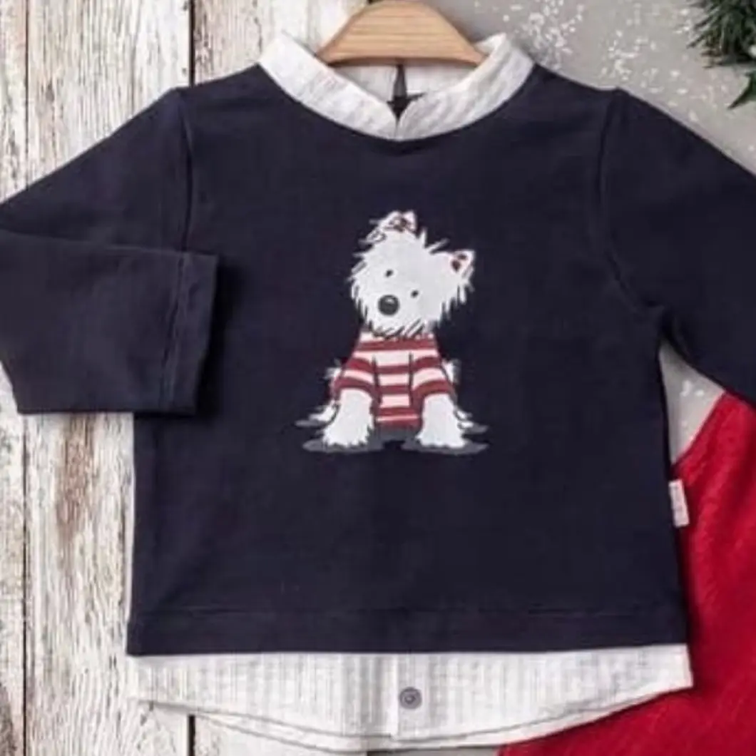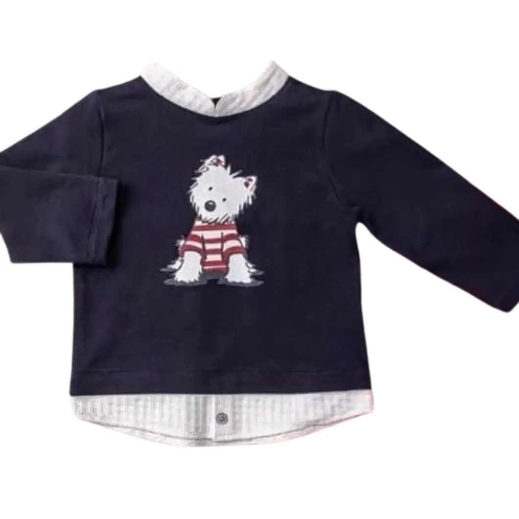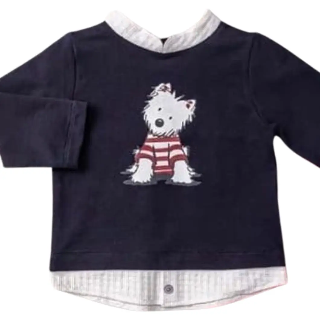 • Bluză bleumarin cu mâneci lungi, imprimeu cățeluș, guler brodat alb