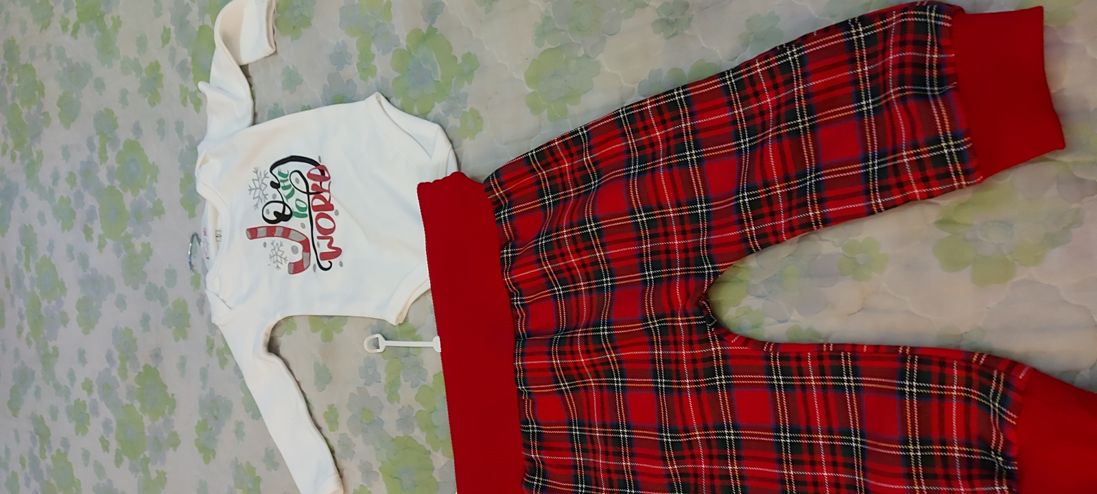 Setul 2 piese (unisex) este perfect pentru sărbătorile de iarnă, dar și pentru purtarea de zi cu zi, datorită materialului său confortabil din 100% bumbac. Setul este compus dintr-un body alb cu mânecă lungă, prevăzut cu capse între picioare pentru o îmbrăcare și schimbare rapidă. Mesajul "Joy to the World" imprimat colorat pe burtică adaugă o notă veselă și festivă. Pantalonii lungi, de culoare roșie, sunt decorați cu un imprimeu cu pătrățele și au borduri reiate la talie și la glezne, pentru a oferi un confort sporit și o potrivire perfectă. Acest set este alegerea ideală pentru a crea amintiri pline de bucurie în sezonul sărbătorilor de iarnă.