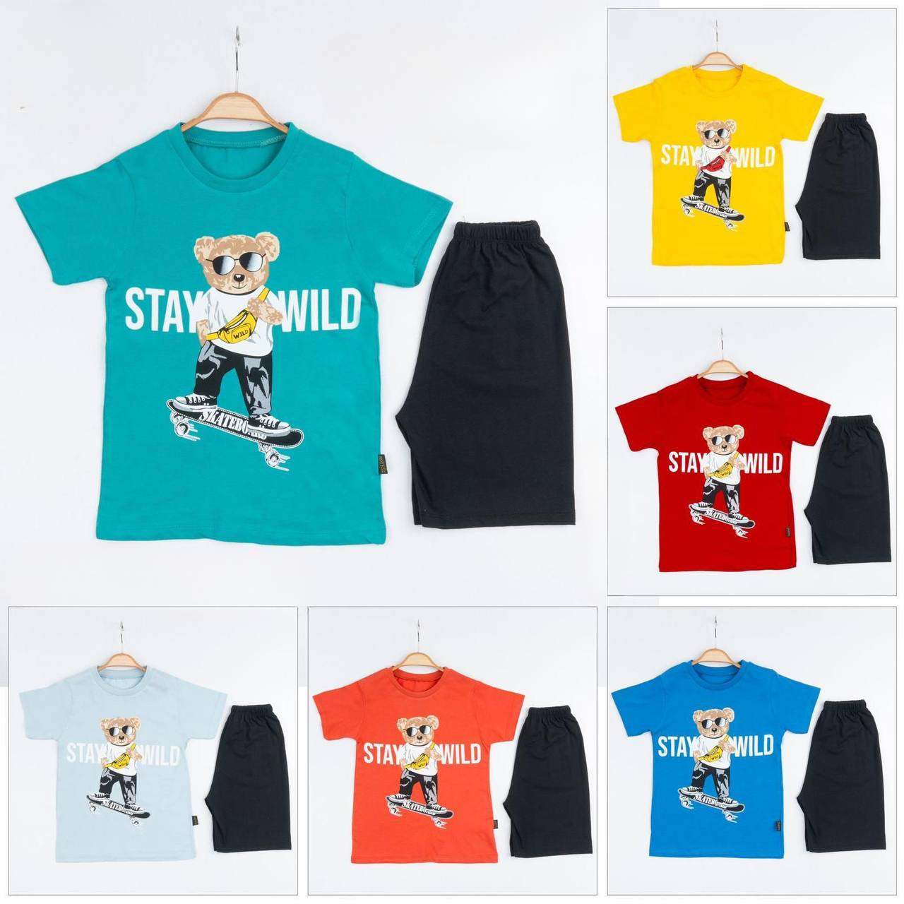 Tricoul albastru este decorat cu un imprimeu distractiv, reprezentând un urs care se distrează pe skateboard. Acest detaliu adaugă o notă jucausă și plină de energie, perfectă pentru aventurile de vară ale micuțului tău. Materialul moale și respirabil al tricoului asigură o purtare confortabilă în zilele călduroase.