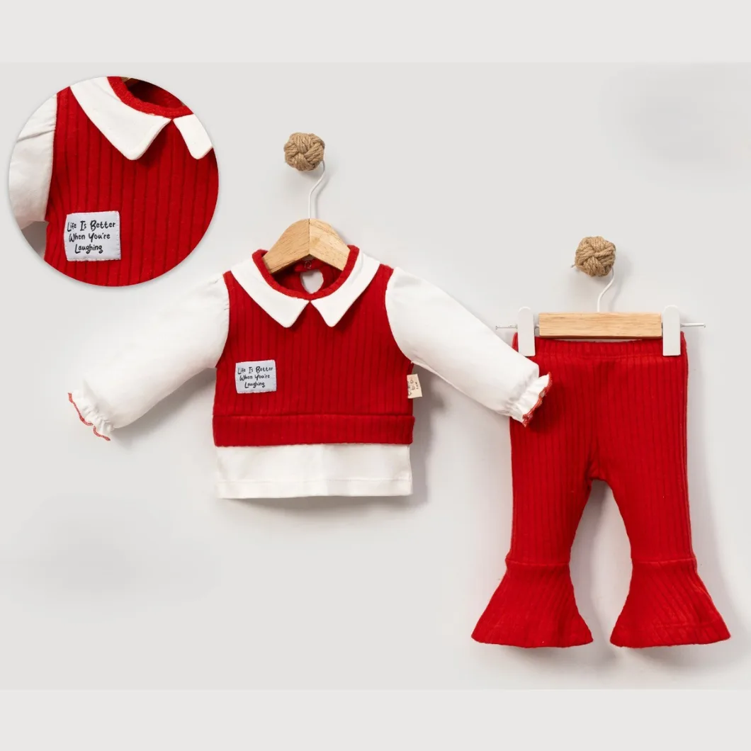 Descoperă Compleul „Lolita”, realizat din 80% bumbac moale, ideal pentru pielea sensibilă a fetițelor.