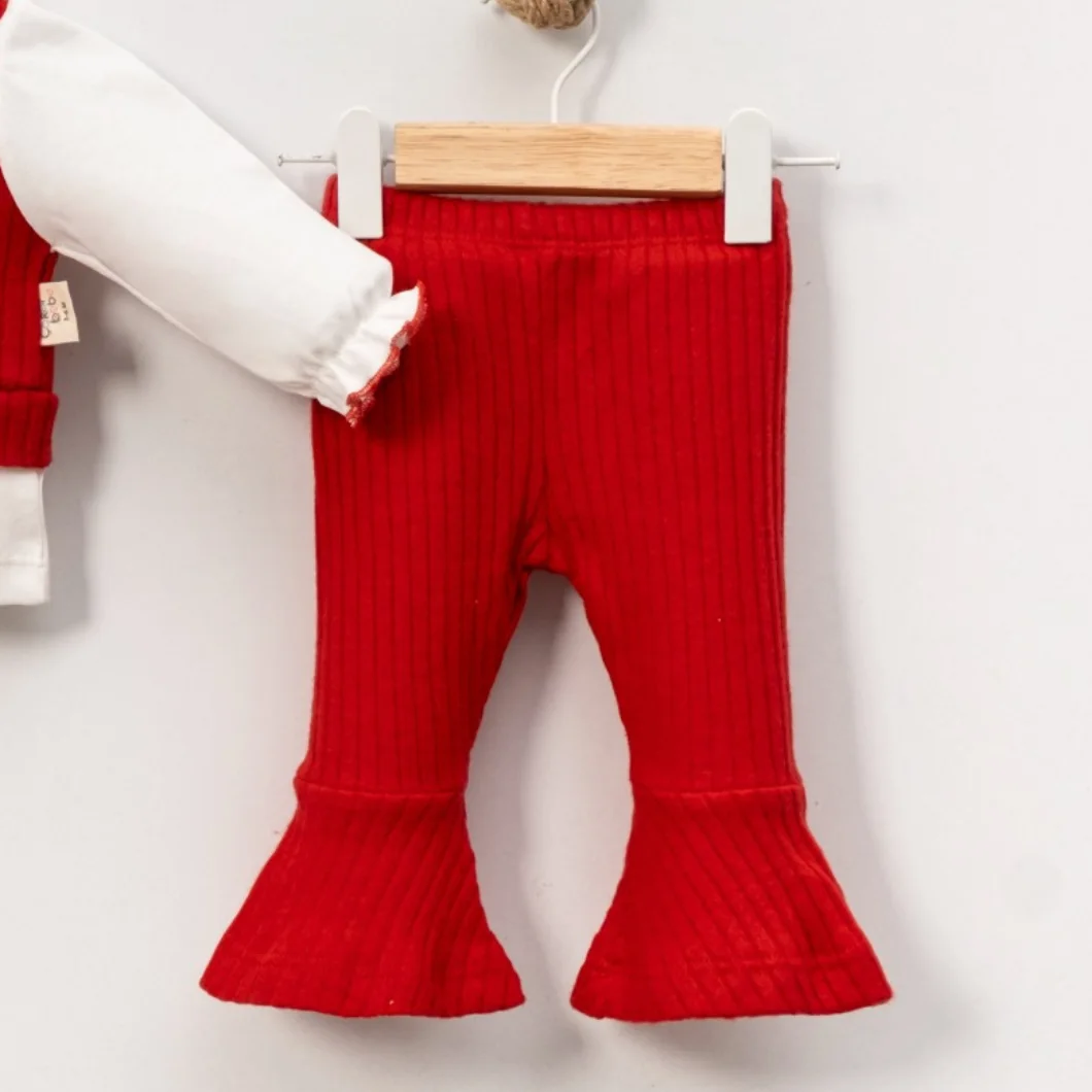👖 Pantaloni evazați la tiv, din material tricotat elastic, oferind confort și o notă fashion inspirată din moda franceză pentru copii.