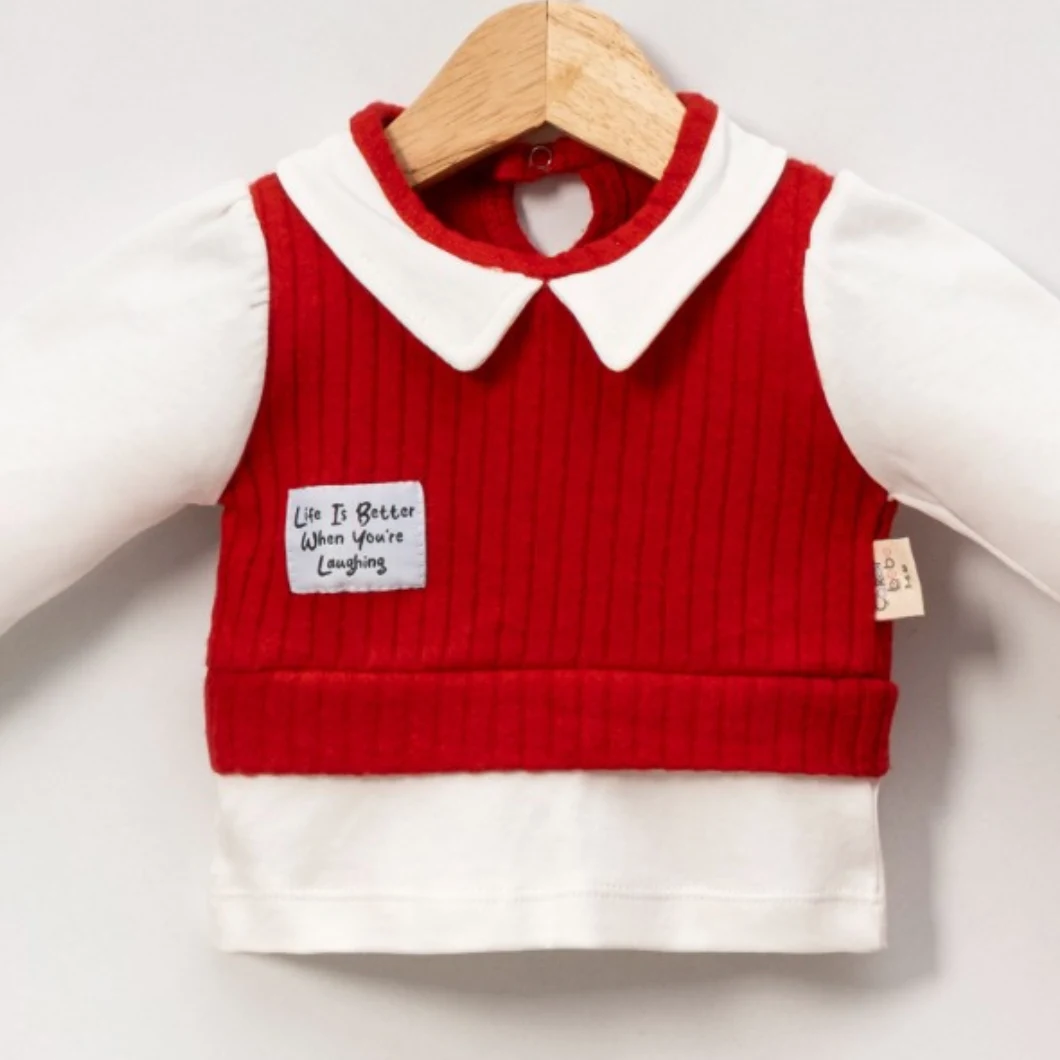 👚 Bluziță cu aspect de vestă tricotată, guler alb contrastant .