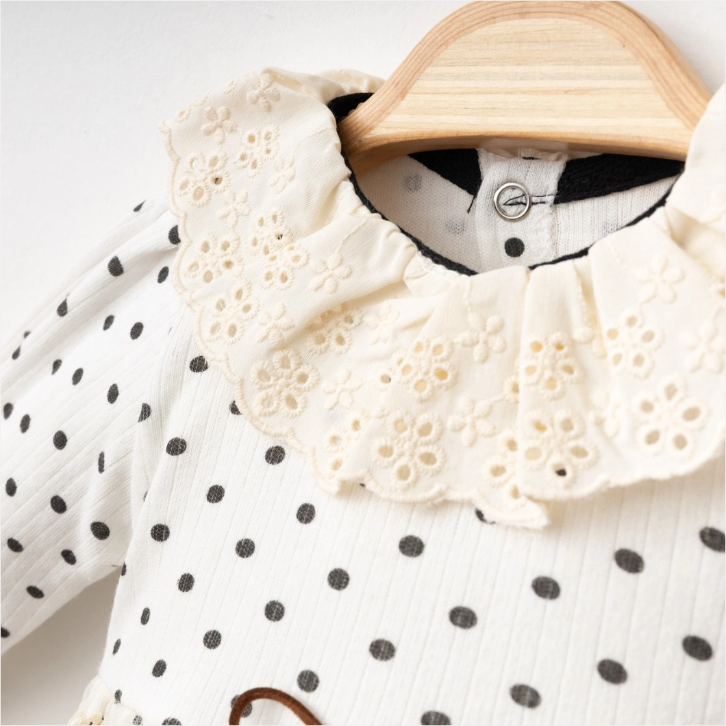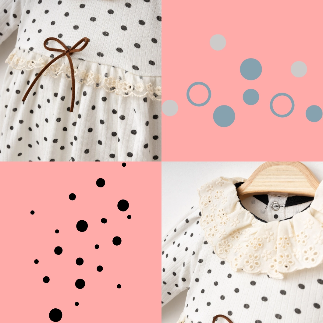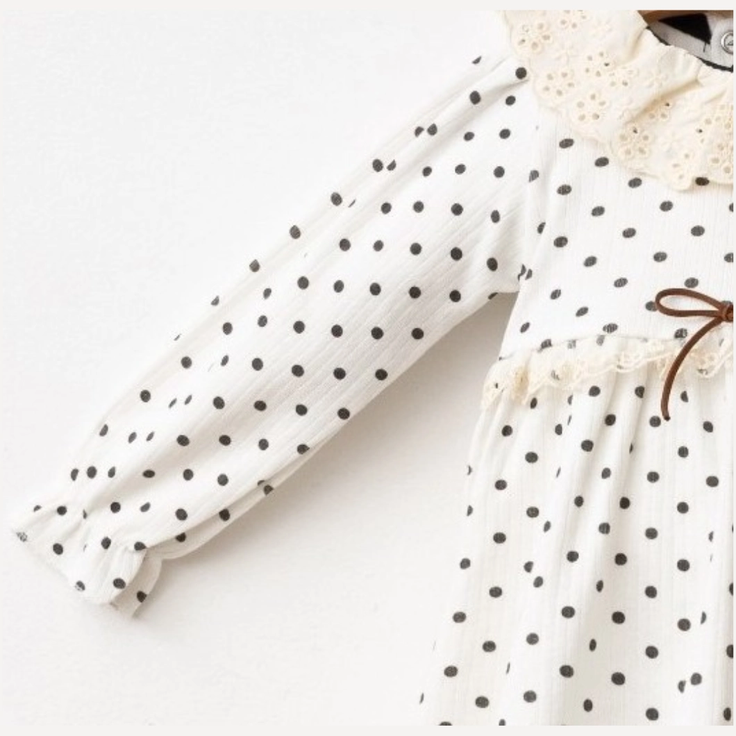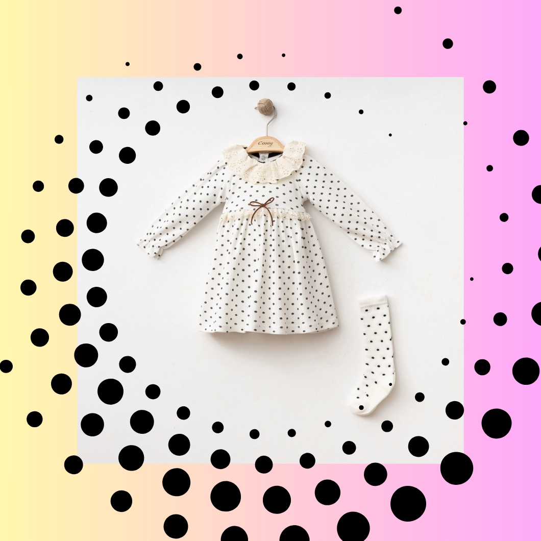 Rochița Dotsie este combinația perfectă între stil clasic și confort. Realizată din bumbac 100% , această rochiță moale și delicată este ideală pentru pielea sensibilă a bebelușilor. Designul său fermecător cu buline negre și dantelă adaugă un aer elegant și rafinat.