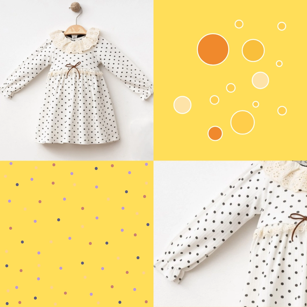 ✔ Design elegant – imprimeu cu buline negre pe fond crem, pentru un look clasic